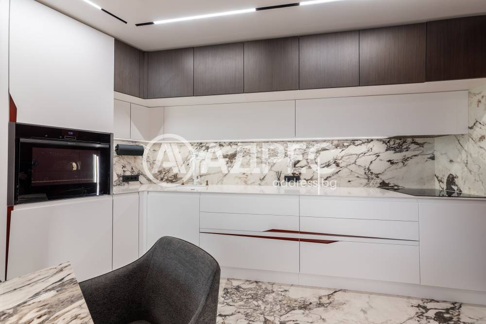 Апартаметът разполага със система "Умен дом", която позволява да се управлява от разстояние бойлера, отоплението, осветлението и завесите в апартамента. Има изградена система за омекотяване на водата, подово отопление, лед осветление и СОТ. Подовите настилки са от естествен паркет. Има възможност за закупуване на паркомясто.