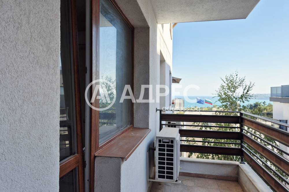Двустаен апартамент с морска панорама, кв. Бриз. Жилището се състои от просторна и слънчева дневна с кухненска част /ново обзавеждане, бяла техника, климатик/. Спалня с легло спалня, гардероб и климатик. Тераса с морска панорама. Баня с тоалетна.