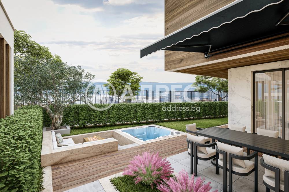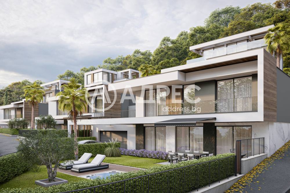 ЕТАП АКТ 14! Възможност за покупка с банков кредит.Фамилна новострояща се къща ситуирана в луксозен комплекс от 9 къщи. Всяка къща ще бъде с отделен обособен двор и морска панорама. Комплексът е разположен в местност "Акчелар". Къщата е на два етажа с двоен гараж с топла връзка. От всяка стая се открива нескриваема морска панорама. Къщата се състои от: