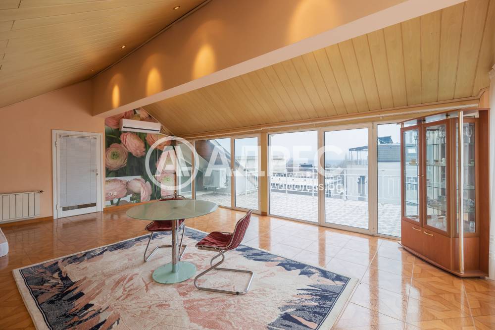 Втори етаж със застроена площ 160 кв.м разпределени в: спалня с просторна тераса, слънчева тераса, будоар, комбиниран санитарен възел. Още две спални.