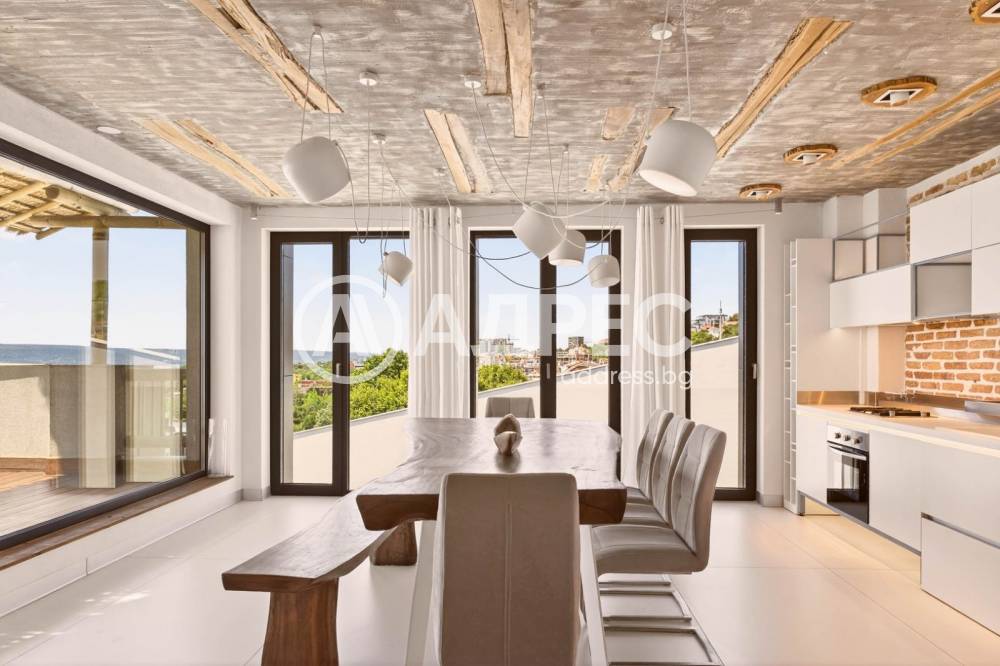 Предлагаме Ви екстравагантен, природо-съобразен и изключително качествено обзаведен, просторен и луксозно завършен апартамент с три спални, находящ се в района на м-ст Св. Никола и кв. Бриз. На разположение на бъдещите наематели са: голяма дневна с кухненска част, три спални, баня и тоалетна - два броя, и тераса със спираща дъха морска панорама. Жилището е завършено в модернистичен индустpиален стил, използвайки само най-качественото обзавеждане и електроуреди, съобразени с екологичното равновесие. Инсталирана е система за подово отопление и охлаждане с най-съвременна и енергийноефективна технология, предоставяща оптимално комфортна температура, без облаци прах.