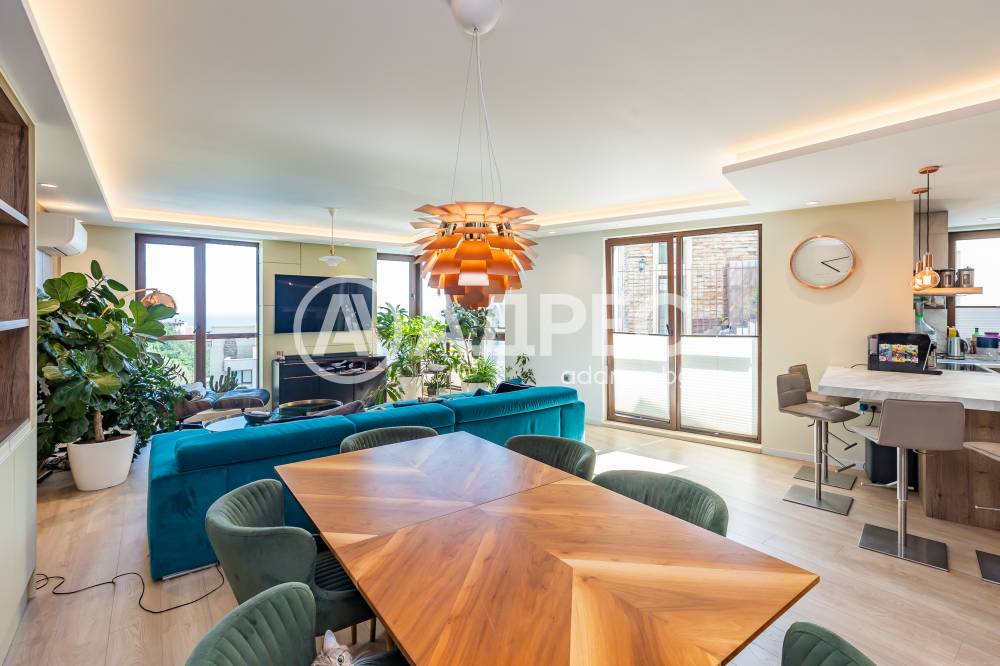 Апартаментът се състои от просторен дневен тракт, с гледка към морето и басейна на комплекса, две просторни спални, баня с тоалет, перално. Жилището се продава напълно обзаведено и оборудвано с висок клас мебели и уреди. Има възможност да се закупи подземно паркомясто 15 000 евро.