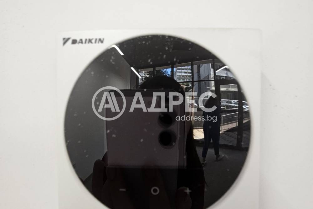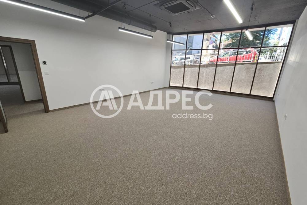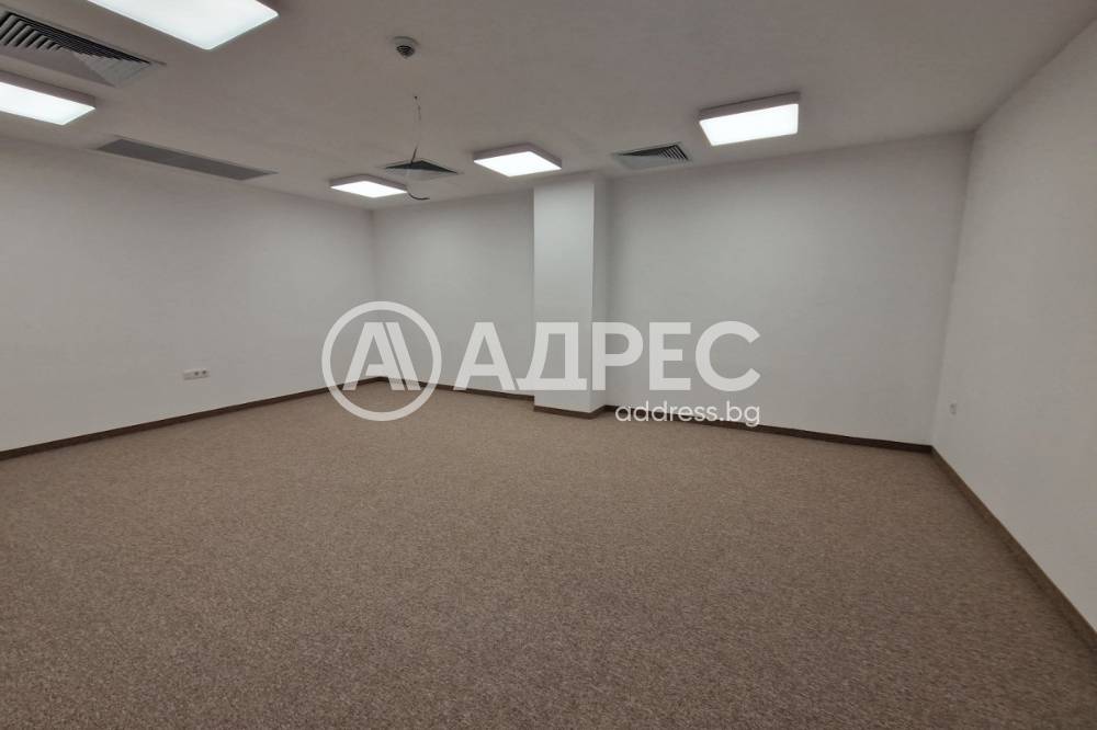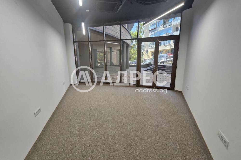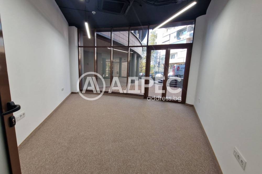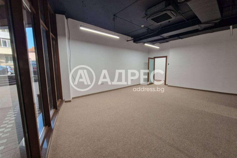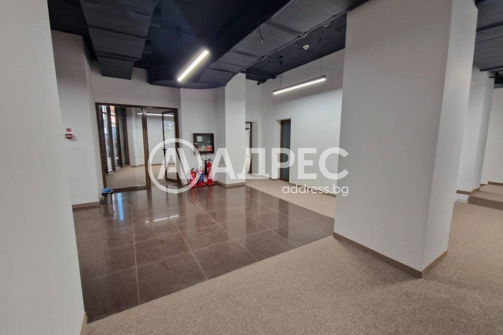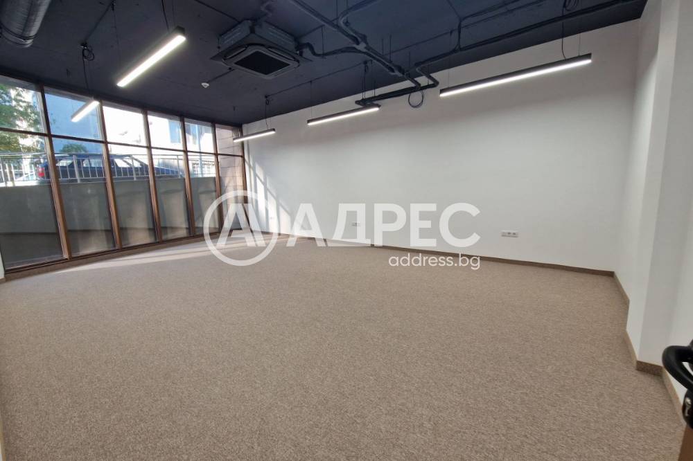 Помещение изцяло на партер в бизнес сграда, подходящо за офис. Чисто ново, неизползвано, в безупречно състояние. Завършено в индустриален стил. Изградена климатична система на "Daikin", окабеляването е тип 5 Е. В момента рапределението е 6 работни помещения, конферентна зала, зона за релакс, сървърно, санитарни възли, рецепция, гардеробна. Положената настилка в помещенията е килим. Обявената наемна цена е без ДДС. Допълнително се заплаща по 2Е/кв без ДДС на месец такса обслужване, която включва застраховка на имота, такса смет, поддръжка на климатична и пожораизвестителна система, актуализация за пожарогасителите, охрана, почистване фасада и предофисно пространство. Възможност за наемане на две паркоместа.