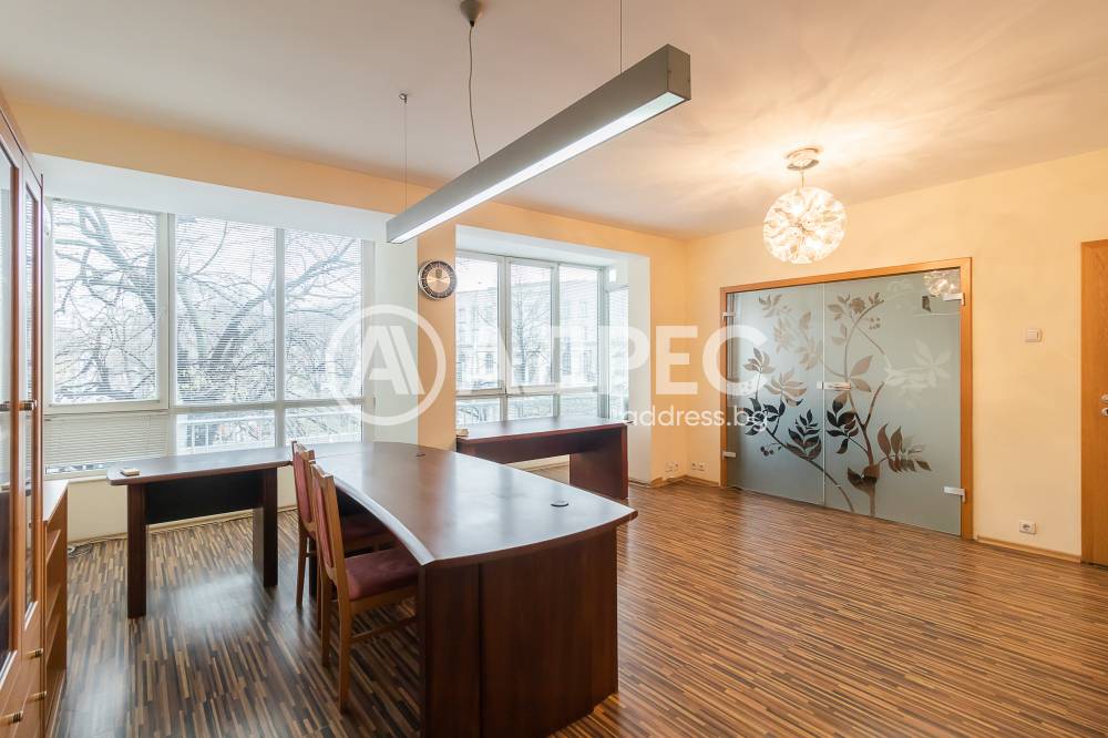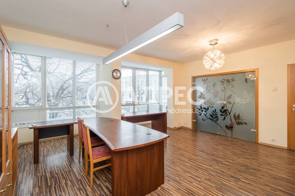 Предлагаме ви напълно обзаведен, разкошен офис на втори етаж в тухлена сграда до главен булевард на центъра, в близост до съда с голям човекопоток. Състои се от четири работни помещения, санитарен възел с преддверие, голяма и удобна остъклена тераса. Много слънчев и топъл, с климатици във всички помещения.