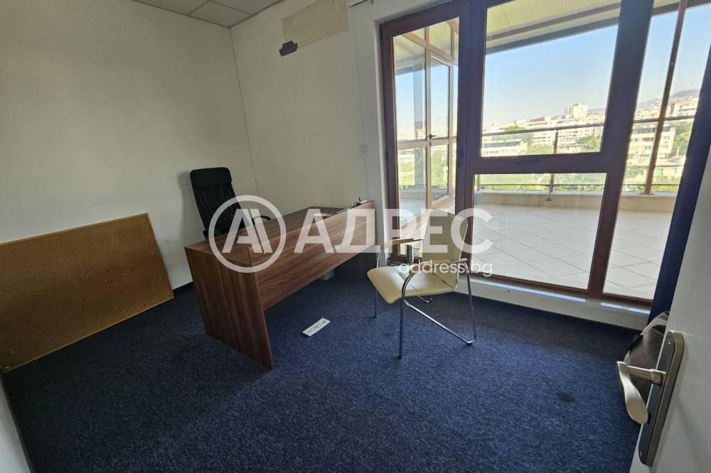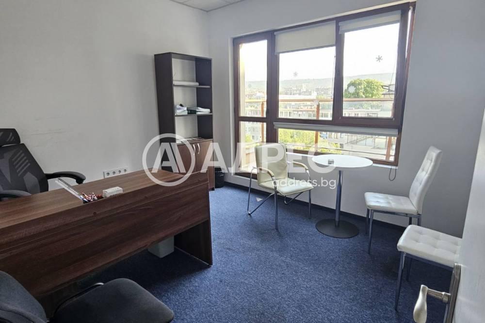 Отдава се офис под наем в модерна сграда от смесен тип. Офисът е с ограничен достъп и е разположен в южното крило на сградата. Напълно завършен, климатизиран и самостоятелни санитарни възли. Може да се ползва и частично обзавеждане. Към момента разпределението е следното - вход/рецепция, помещение open spase ( над 100кв), сървър, два кабинета със стъклени прегради, 5 работни помещения, голяма стая за почивка/отдих с кухня(напълно оборудвана включително и съдомиялна), санитарни възли - 2 дамски и 2 мъжки, две страхотни тераси едната от които остъклена. Възможност за ползване на до 2 паркоместа в подземния паркинг на сградата. Наемната цена е без ДДС. Допълнително се заплаща по 3Е/кв.м без ДДС такса обслужване на сградата.