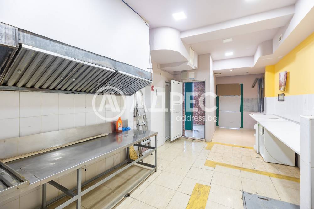 Само от АДРЕС! Предлагаме партерно ъглово помещение със статут на СНЕК-БАР в района на Червения площад. Партерно помещение с площ от 131 кв.м., на което са разположени търговска зала със санитарен възел, кухненска част с мивки, аспирация, кухненски маси от неръждаема стомана, санитарен възел. Второ ниво: сутерен - склад с площ от 26 кв.м. Помещението е изцяло с панорамни витрини. Подходящо е също за магазин, офис, фитнес, козметично/фризьорско студио, медицински кабинет.