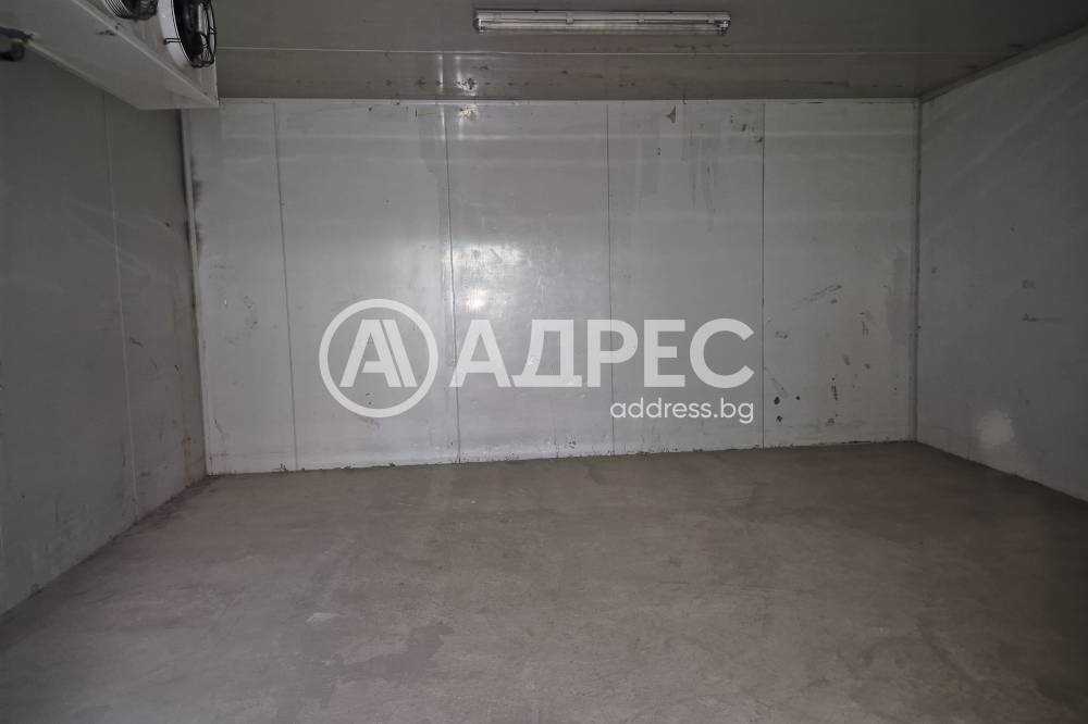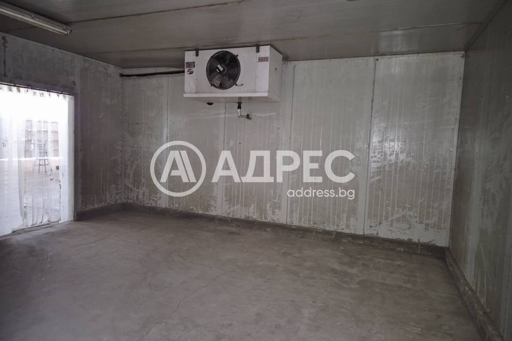 Предлагаме ви самостоятелен склад с площ 1000 кв.м. Има изградени пет хладилни камери със следните размери - първата е 230 куб.м., две по 165 куб.м., две по 8 куб.м., като две са минусови и останалите три са плюсови. Четири офиса като два са в еднията крайн, а останалите два в другият, санитарен възел. Височина 3.20 метра. Рампа. Има отделен трафопост, който захранва цялата сграда.