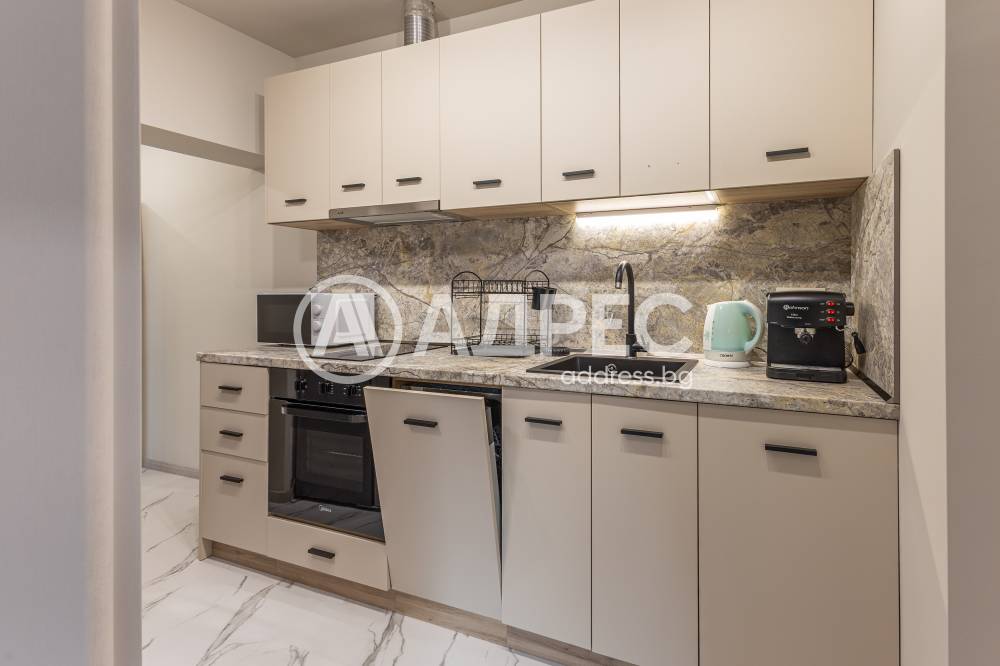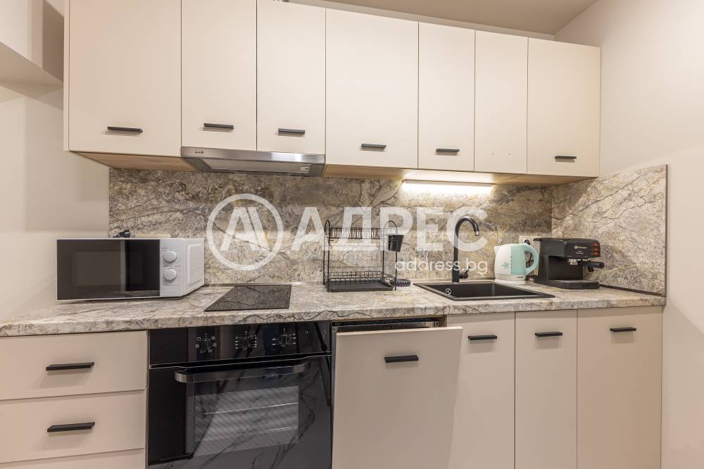 Кухня оборудвана с хладилник, вградена фурна, стъкло керамични котлони, аспиратор, съдомиялна, микровълнова, кафе машина.