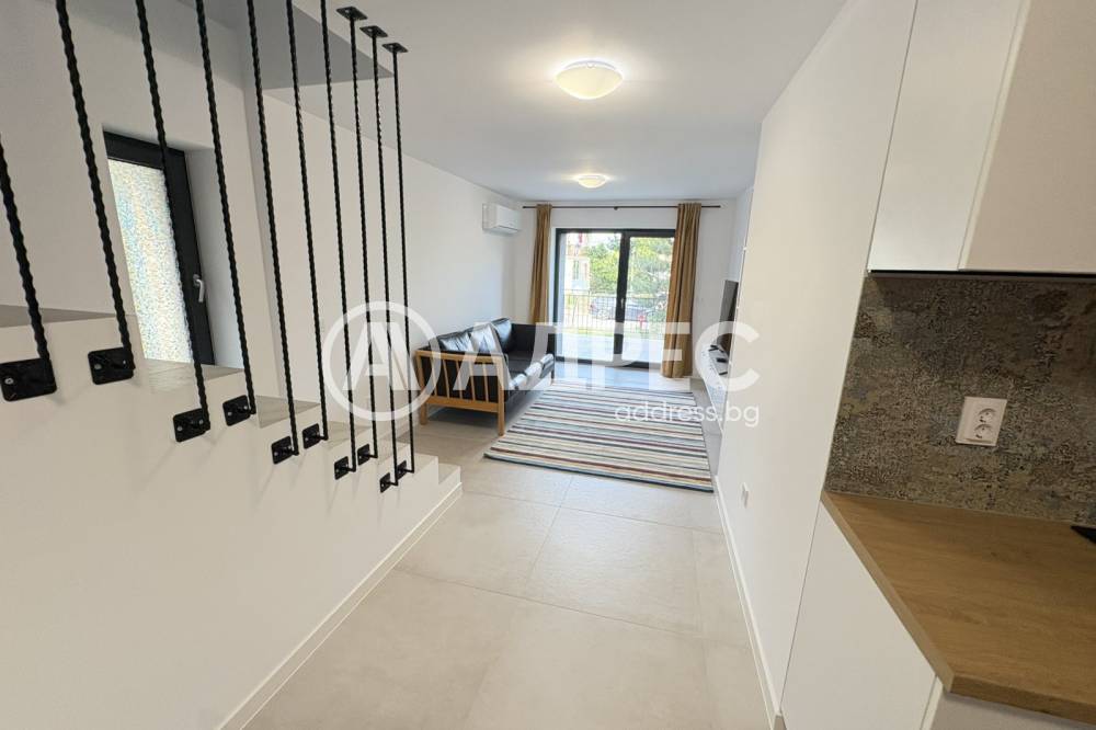 Предлагам за продажба уникален мезонет с усещане на къща. Имота е със следното разпределение: На партерно ниво със самостоятелен вход се влиза в дневният трак, разпределен на кухня с трапезария, хол, помощни помещения. Второ ниво две спални със санитарен възел. В сутерена може да се обособи помещение за забавление. Фитнес, кино, стая за гости .... Към жилището има малък двор с право на ползване. Прекрасно обзаведен в средиземноморски стил. Може да се наеме и паркомясто!