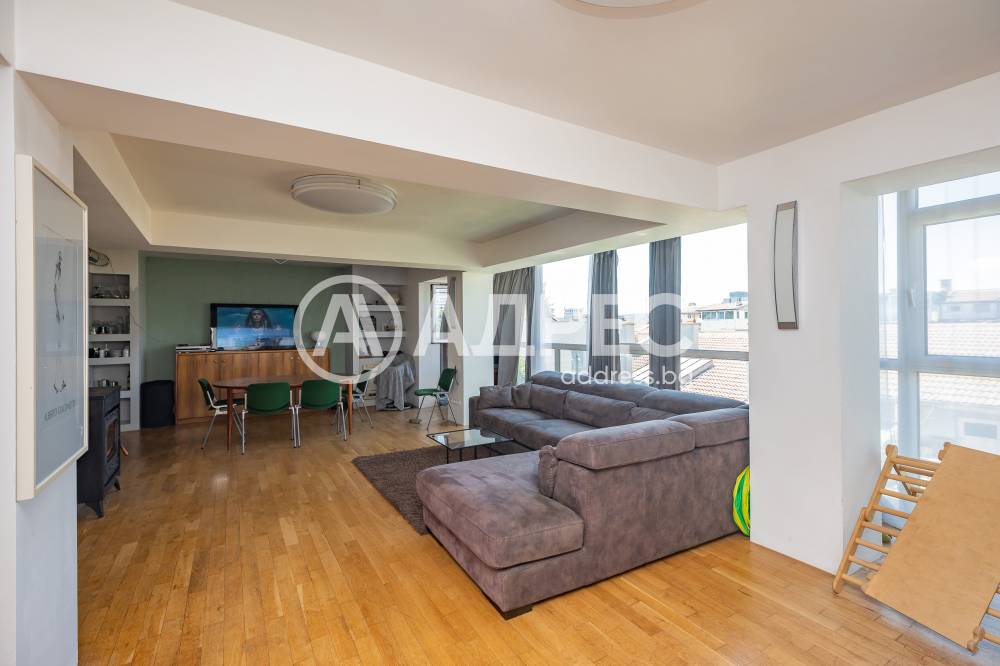 Тристаен апартамент в района на "Генералите". Жилището е с чиста площ от 118.45 кв.м и се състои от просторен дневен тракт с обособена кухненска част с вградена кухня, трапезария и холна част с мека мебел, спалня с дрешник, баня с тоалет, коридор и обширна тераса с излаз от всички стаи. Втората спалня в момента е присъединена към дневната, която се получава с площ 60 кв.м. Апартаментът се предлага отлично завършен и обзаведен. Висок клас на довършителните работи, мебели и уреди.