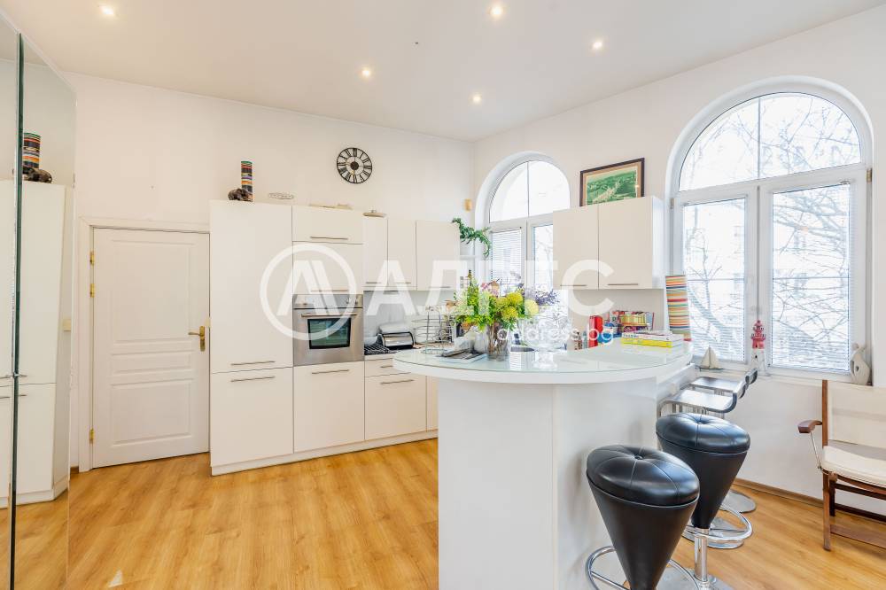 Характерно за имота са високите тавани, чийто обем вдъхновява и дава усещане за свобода и мащаб.