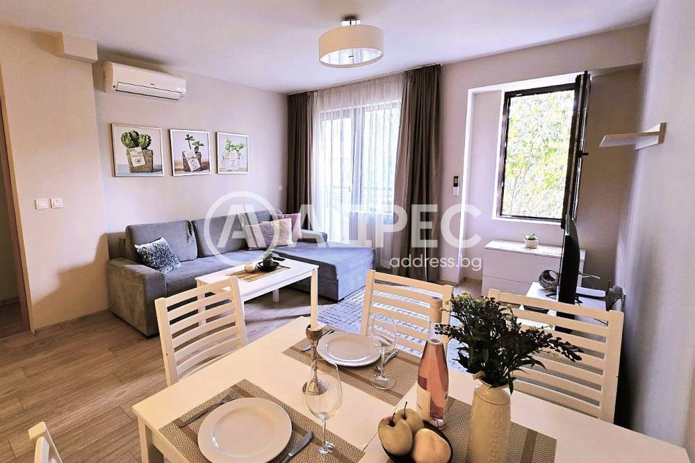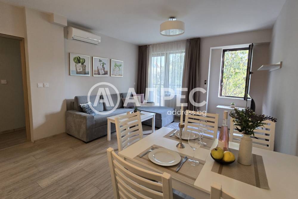Тристаен, елегантно обзаведен апартамент, напълно оборудван в нова и луксозна сграда, на метри от Морската градина. ПАРКОМЯСТО ВКЛЮЧЕНО в наемната цена. Състои се от слънчева и светла дневна с вградена кухня, две спални (всяка от които с двойно легло, удобен гардероб), баня с wc и отдеделн санитарен възел, перално помещение, функционално входно антре. И в трите стаи са поставени климатици от най-висок клас.