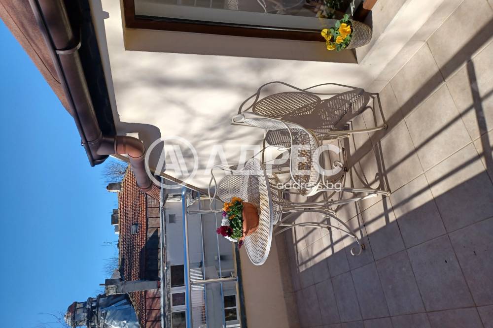Просторен тристаен апартамент, разположен в непосредствена близост до Римски Терми. Жилището е тип мезонет и е със следното разположение: