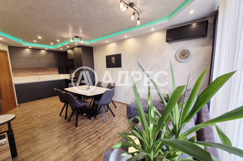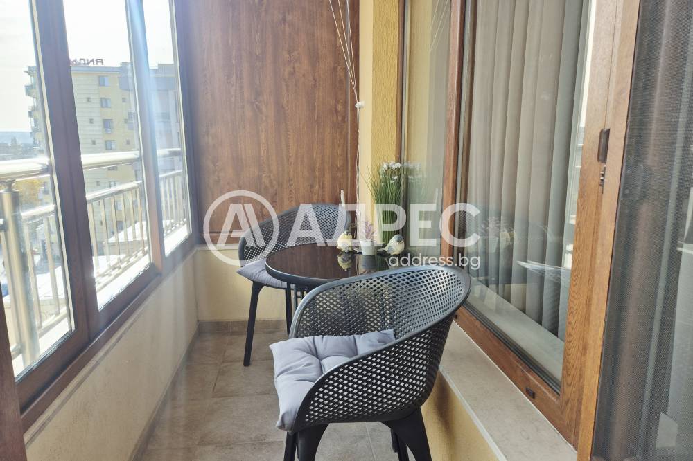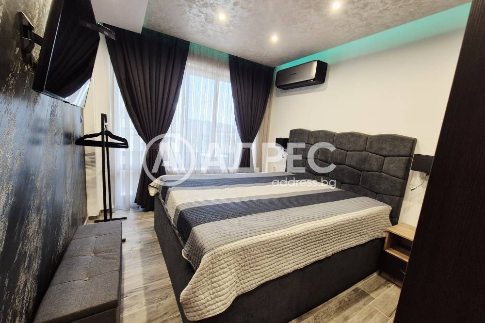 Двустаен, луксозно обзаведен апартамент в района на Гранд Мол. Жилището се състои от дневна с кухненска част - вкл. съдомиялна и пералня със сушилня, мека мебел, климатик, телевизор. Спалня - модерно обзаведена - отопление климатик. Баня с тоалет. Тераса.