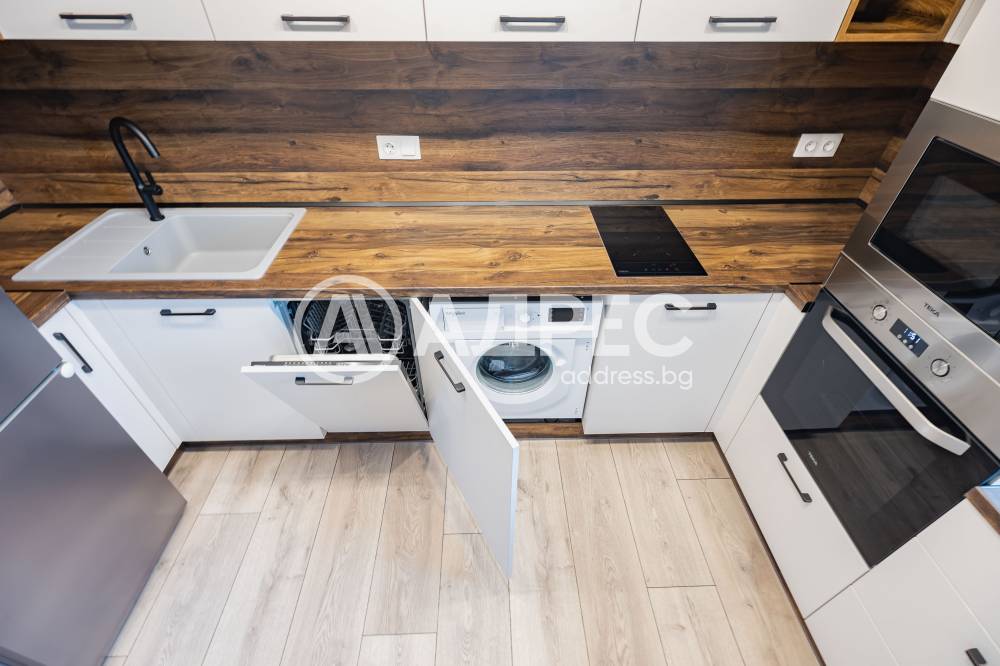 Предлагме Ви чисто, нов апартамент с две спални. Жилището е обзаведено в меки цветове, функционално разпределено. Представлява дневна с кухнеска част (бяла техника, вкл. съдомиялна, мека мебел). Спалня с голямо легло, гардероб, остъклена тераса. Втора спалня - обзаведена. Баня с тоалет. Три климатика. Първи наематели.