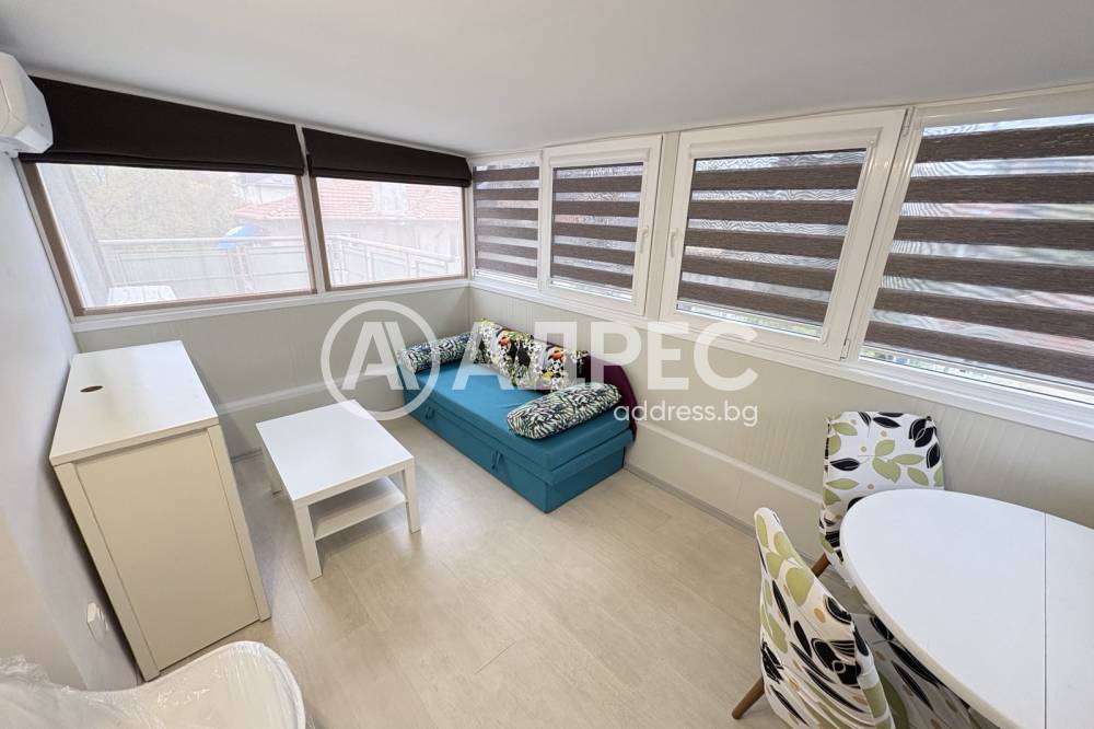Предлагаме Ви под наем маломерен, двустаен апартамент в ТОП център, на метри от Морската градина. Жилището е ново, след ремонт. Напълно обзаведено и ообрудвано. Разполага се на 5-ти последен етаж в сграда без асансьор. Състои се от: Голяма стая с кухня и голямо легло, малка дневна, килер, баня с тоалет, входно антре и тераса. Апартаментът е оборудван с два климатика. Отдава се дългосрочно, огледи с ключ!
