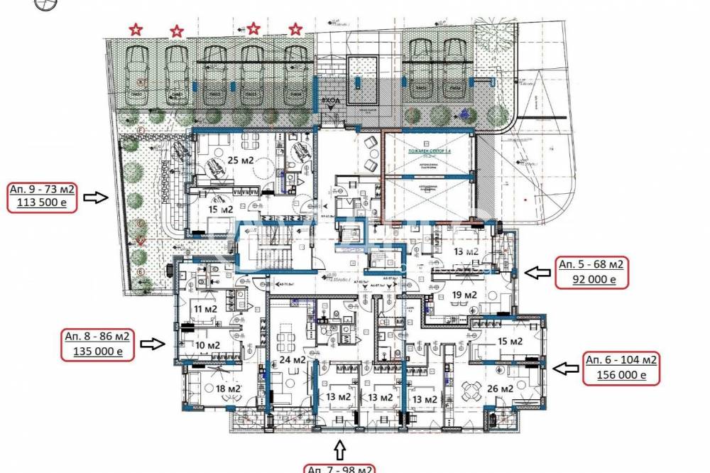 по БДС. Има възможност за закупуване на открито или подземно паркомясто.