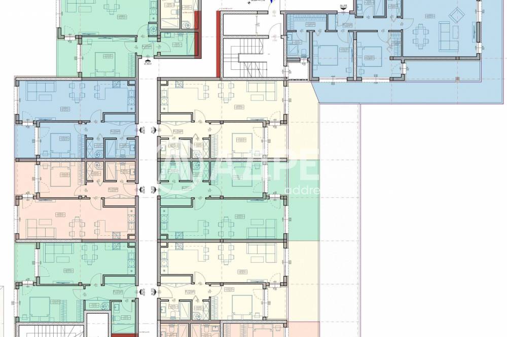Сградата разполага със 111 апартамента – добре балансиран микс от двустайни, тристайни и по-просторни многостайни жилища. Разпределенията са проектирани така, че да осигурят максимално функционални дневни зони с кухненски бокс, комфортни спални, удобни бани и практични килери и преддверия. Част от жилищата са с по-големи площи и възможност за обособяване на допълнителни зони за работа или почивка, което прави сградата подходяща както за млади семейства, така и за купувачи, които търсят по-висок клас градско жилище.