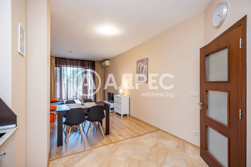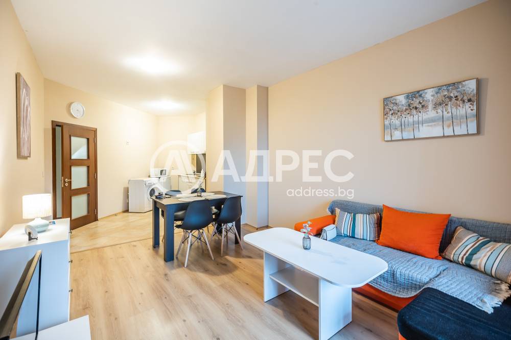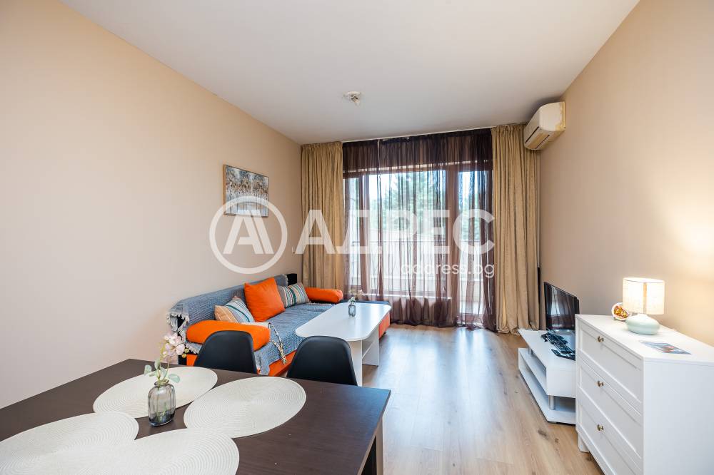 Предлагаме Ви обзаведен двустаен апартамент в к-с Кабакум Бийч Резиденс. Имота се състои от входно антре ,дневна с обособена кухня ,кът за хранене и кът с мека мебел.Спалня с легло спалня и една тераса. Апартамента се отоплява и охлажда посредством климатици. В наемната цена е включена такса поддръжка към комплекса.