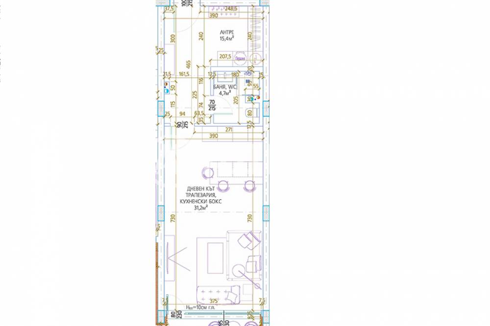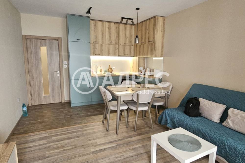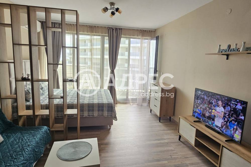 Едностаен апартамент в комплекс с необятна морска панорама сред изключителна тишина и спокойствие. Място, което Ви пренася в един морски рай и Ви доставя удоволствие за незабравими дни със своя комфорт, зеленина, плувен басейн за Вас, басейн за Вашите деца и СПА зона с джакузи/ целогодишна/, парна баня и сауна. Жилището е разположено на трети етаж с гледка към морето и се състои от голямо антре (15,4кв.м.) с вграден гардероб, баня и тоалетна (4,7 кв.м), дневен кът с трапезария и кухненски бокс, в който има обособена спална част (31.2 кв.м), тераса (6.6 кв.м). Южно изложение. Отопление с климатици-мултисплит система. Апартамента се продава напълно обзаведен и оборудван с всичко необходимо. Прилежащо избено помещение от 3.30 кв.м.