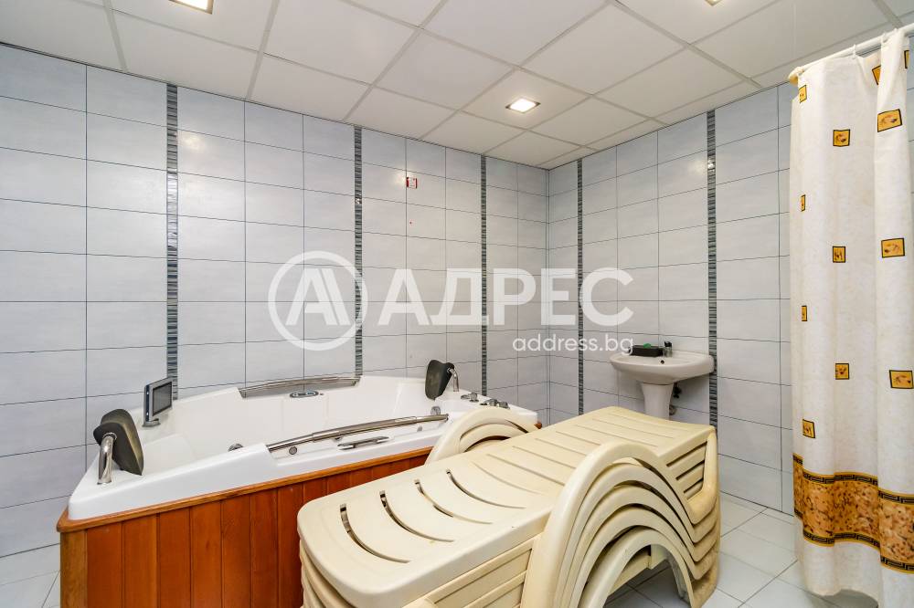 Спа център състоящ се от рецепция, две парни бани, джакузи, сауна, две бани, две тоалетни и две помещения които могат да се оборудват за масажно и козметичен салон. Недвижим имот със статут на фитнес и спа център.Етажа се води сутерен,но реално се явява партерен етаж на нивото на терена.Квадратурата е 317.30 м2.Това е чистата квадратура,като към нея трябва да се прибавят 3.556 % идеални части от общите части на сградата.Средно за обект те са около 15%. Има вход както от коридора във вътрешността на сградата,така и през външна врата от двора,до която има автомобилен достъп,което позволява да се ползва дори и като склад.В обекта има тангенторни вани,турска баня,сауна и др.Оборудването е в изправност и работи.В някои участъци обекта се нуждае от ремонт,тъй като не е ползван с години.