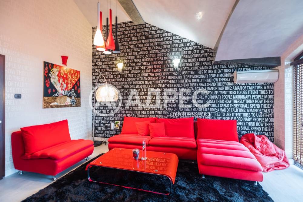 Цялото жилище е обзаведено с красиви мебели, техника висок клас, копринени тапети и елегантни аксесоари.