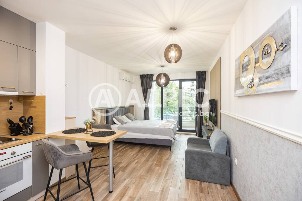 Продава се апартамент в затворен комплекс на к.к."Св.Св.Константин и Елена". Жилището представлява тип студио, разпределено на кътове: кухненска част с вградена кухня, трапезарна, холна и спална част, стилно и удобно обзаведени, баня с тоалет, входно антре, тераса с отлична площ позволяваща релакс и гледка. Апартаментът е напълно обзаведен и оборудван, много светъл и топъл. Намира се на среден етаж, без крайни стени и отстъпи. Към него има избено помещение. Статут апартамент.