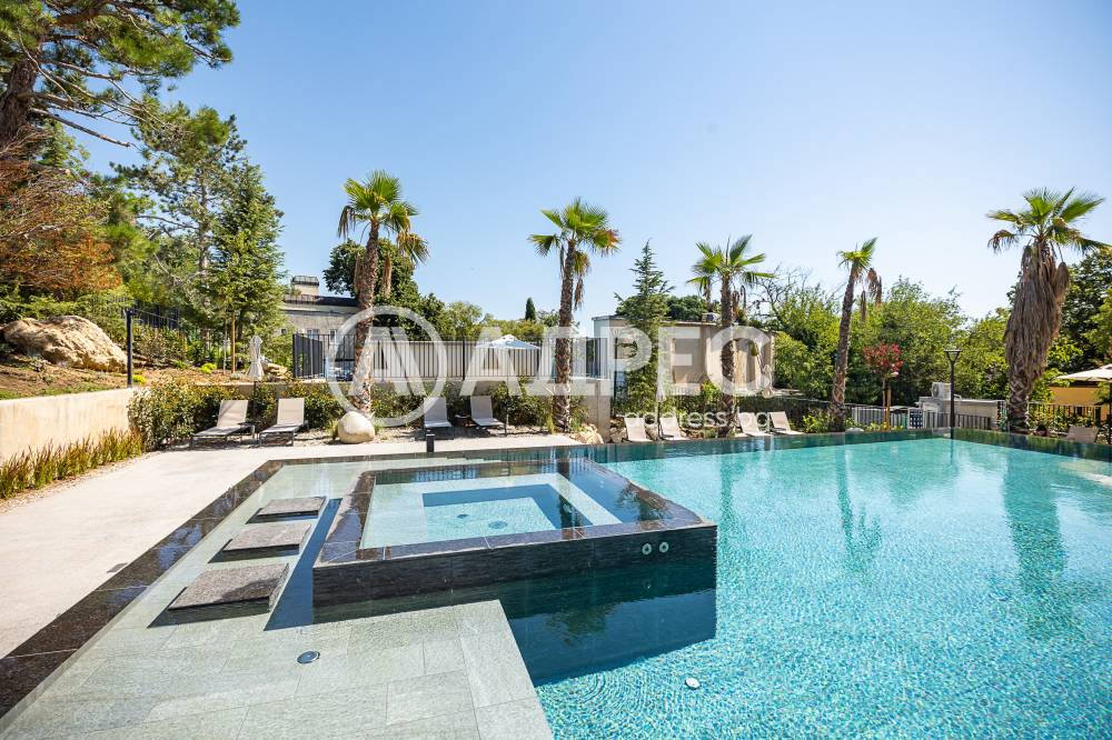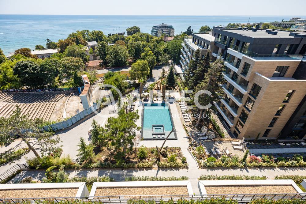 Къща - елегантна, модерна архитектура, с уникална морска панорама. Имотът е част от емблематичен затворен комплекс в к.к. Св. Константин и Елена. Къщата е много просторна и с много естествена светлина, построена е с висококачествени материали С АКТ 16 от 2024. Разполагаща със самостоятелен двор и двоен подземен гараж с топла връзка към подземен паркинг. Състои се от голяма дневна - около 50 кв.м с френски прозорци, ориентирани на юг с красива гледка към прекрасно озеленена градина и екзотичен басейн, голяма баня - на първо ниво; на второ ниво три просторни спални и също голяма баня , както и широка панорамна тераса към трите стаи с неустоима морска гледка. В момента е в състояние по БДС.