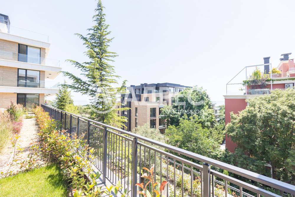 Апартаментът е изпълнен с френски прозорци, които осигуряват изобилие от естествена светлина и откриват красива гледка към морето. Настилките са от висококачествен италиански гранитогрес, а стените и таваните са завършени с екологична гипсова мазилка, създаваща усещане за чистота и уют.
