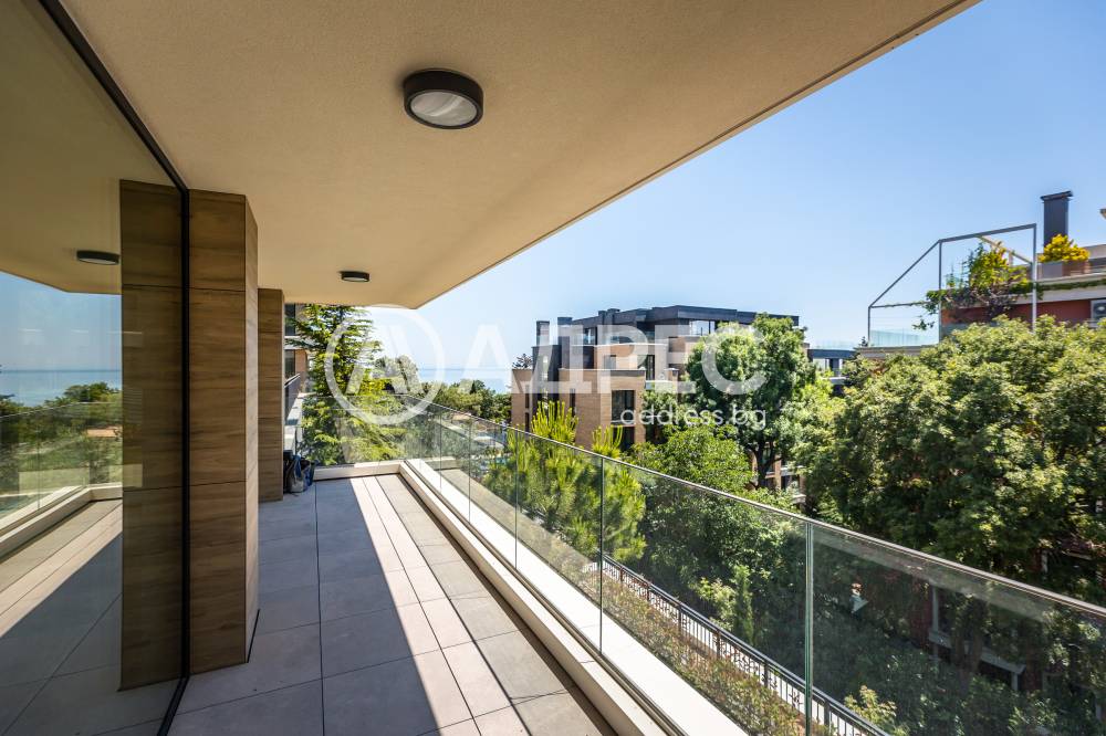 Представяме ви изключителен многостаен апартамент, изпълнен с естествена светлина и спираща дъха морска панорама. Имотът впечатлява не само с функционалното си разпределение, но и с високия стандарт на довършителни работи и модерни удобства. Жилището се състои от просторна родителска спалня с обособен дрешник, както и две уютни детски стаи, подходящи както за деца, така и за кабинет или гостна. На разположение са две модерни санитарни помещения — основна баня с тоалетна и вана, и втора баня с тоалетна и душкабина. И двете помещения са напълно оборудвани и завършени с внимание към детайла, включително музикални електрически огледала.