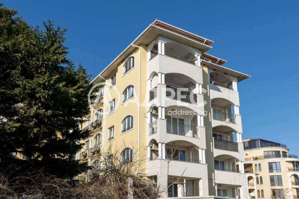 Слънчев тристаен апартамент с морска панорама, разположен е на етаж 5 от 6, изцяло покрит. Състои се от дневна с трапезария и холова част 28 кв.м, две спални по 14 кв.м ,баня с тоалетна, коридор, втора баня с тоалетна, тераса.