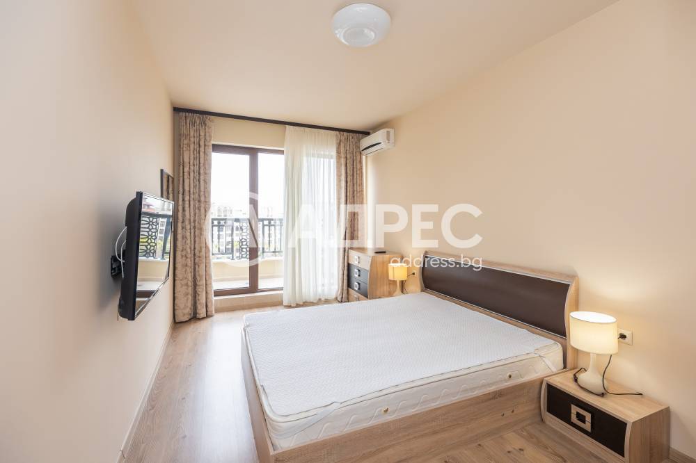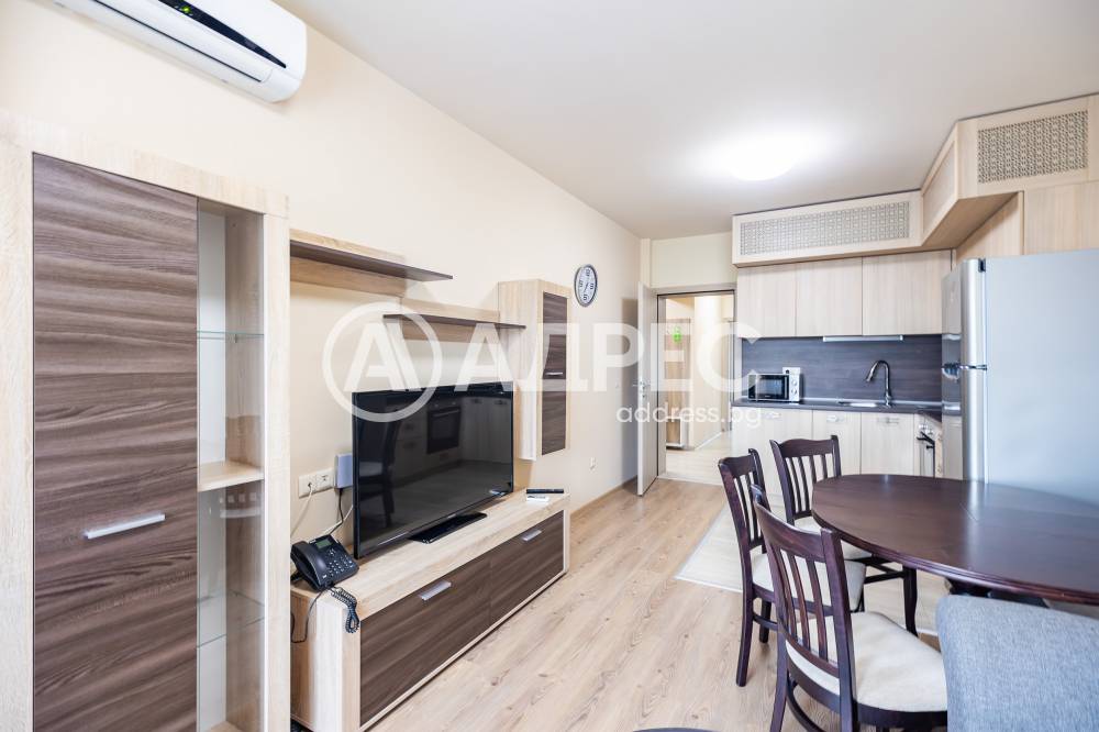 Обзаведен, двустаен апартамент, разполагащ с просторна дневна, оборудвана с всичко нужно за едно домакинство, спалня, голяма тераса, с излаз от всички стаи, санитарен възел и антре.