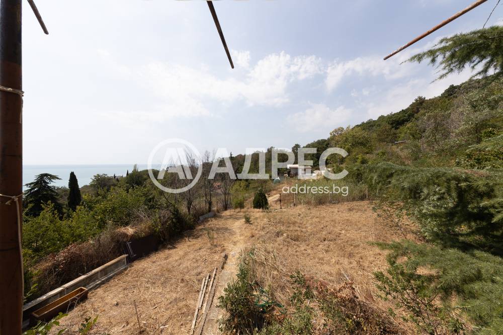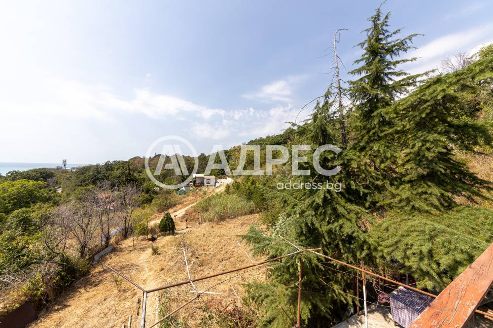 Двуетажна вилна сграда с уникална и нескриваема морска панорама. Имотът се състои от партерен етаж, първи жилищен етаж с голяма дневна с кухня, веранда, баня с тоалетна, външни стълби, водещи към втория етаж, на който са разположени две спални с тераса. Имотът се намира над главния път "Златни пясъци - Балчик". От имота се открива некриваема панорама към морето и плажа на "Златни пясъци". Двор 634 кв.м. Партиди - ток и вода. Къщата е узаконена с удостоверение за търпимост.