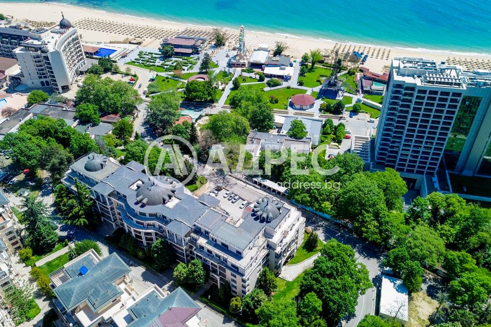 Предлагаме уникален голям апартамент само на няколко крачки от златистия плаж и синьото море на Златни пясъци. Жилището съчетава усещането за простор, комфорт и елегантен дизайн с една от най-престижните локации на българското Черноморие. Уникален тризонет с безкрайна морска панорама, изпълнен по дизайнерски проект. Апартаментът е разположен на три нива, като от всяко се разкрива прекрасна морска панорама. Общата площ на трите нива с терасите е над 500 кв.м.