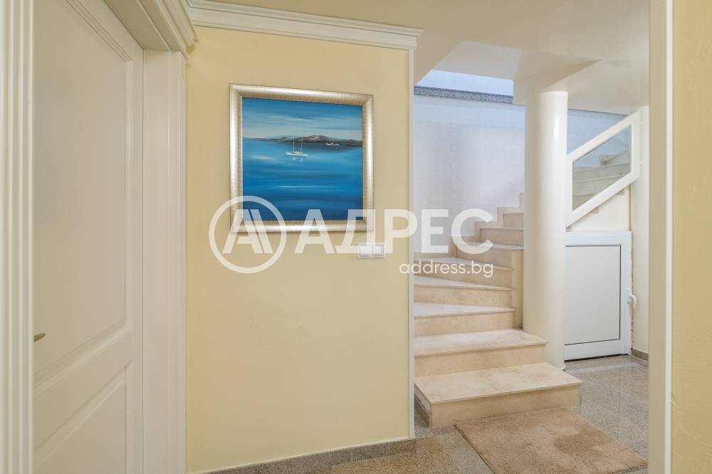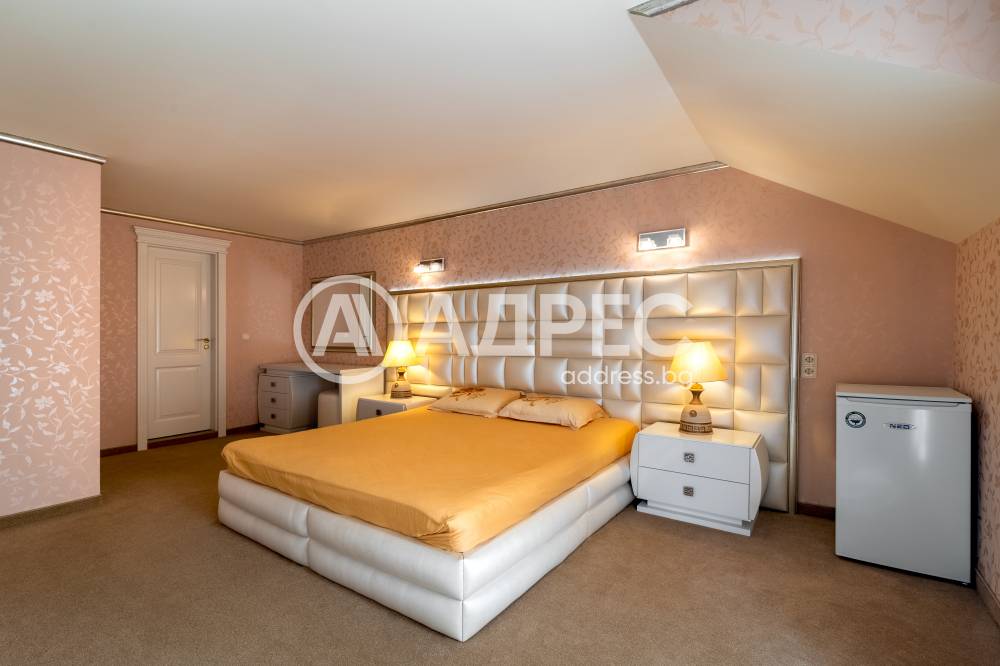 Втори етаж: просторна дневна с трапезария и кухненски бокс (оборудван с висок клас електроуреди), холов кът с достъп до тераса, допълнителна спалня с тераса, баня с тоалетна; коридор.