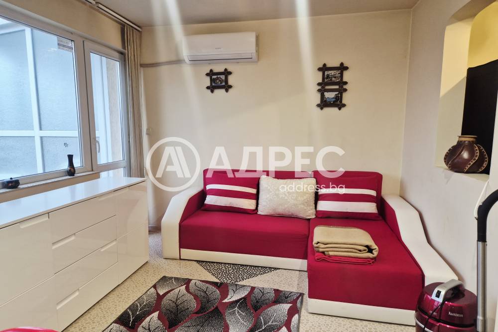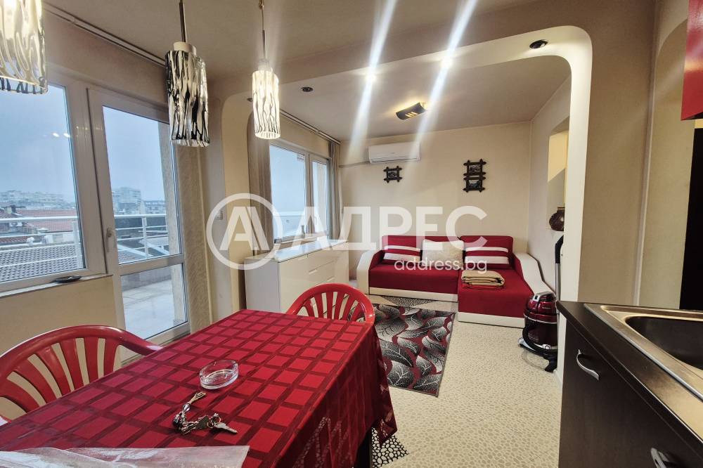 Едностаен напълно обзаведен апартамент, намиращ се в района на Колхозен пазар. Състои се от просторна стая разделена на кътове, оборудван кухненски бокс, трапезна маса, разтегателен диван, баня с тоалет, входна антре, голяма тераса, която може да се използва като лятна градина. Имотът е готов и свободен за нанасяне.