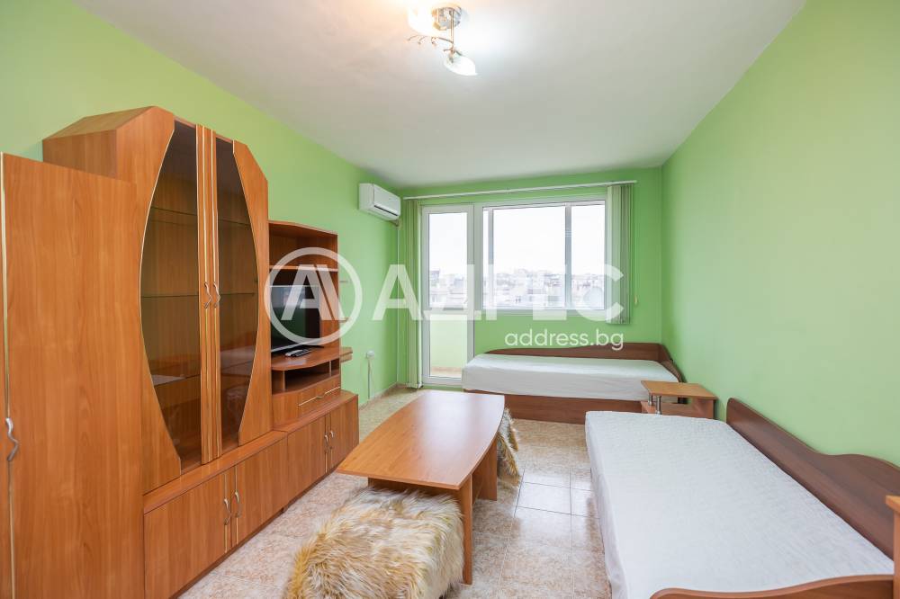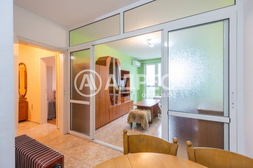 Отдаваме под наем апартамент в района на Колхозен пазар. Състои се от слънчева спалня с двойно легло, втора стая с две отделни легла, малка кухня, коридор, баня с тоалетна, остъклен балкон. Отоплението и охлаждането са решени с два климатика. Жилището се отдава дългосрочно.