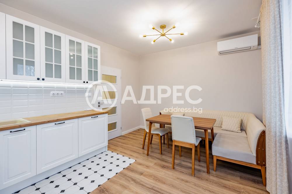 Апартаментът е след основен ремонт и разполага с ново обзавеждане и оборудване (фурна, индукционни котлони, пералня със сушилня, миялна машина и хладилник). Отоплението и охлаждането на имота е с два климатика. Отдава се дългосрочно. Огледи с ключ.
