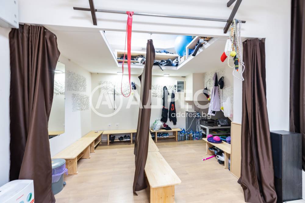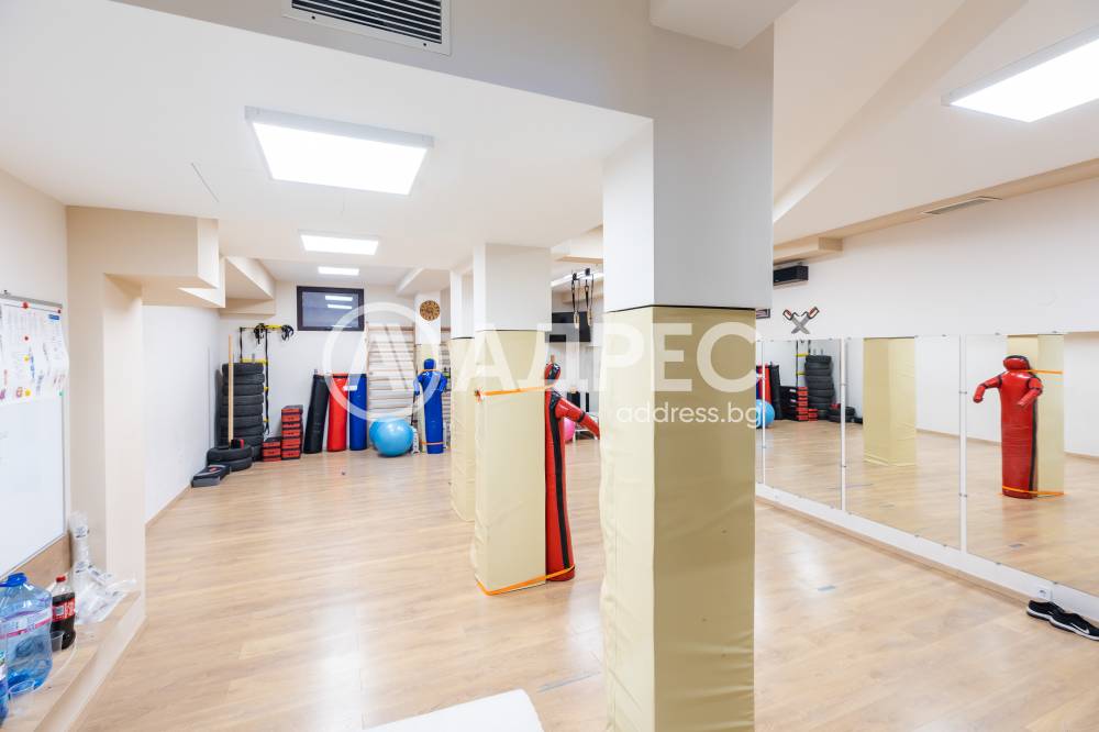 Фитнес оборудвана зала 138 кв.м, състояща се от входно антре на партерен етаж, стълбище към залата, санитарно помещение и съблекалня. Статут на обекта - за обществено хранене (Кафе - бар). Подходяща за различни видове дейности.