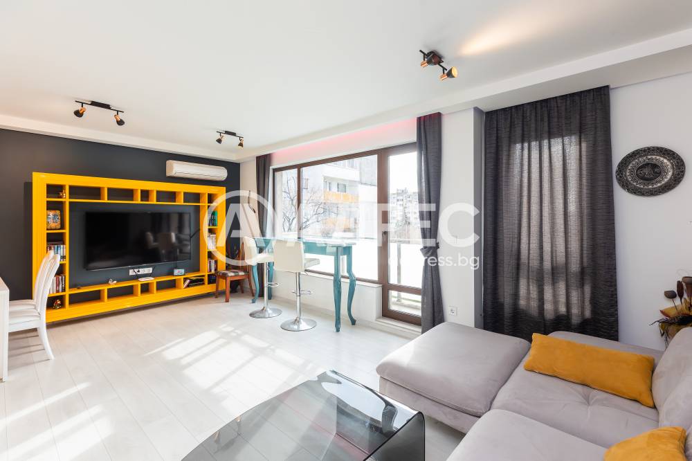 Тристаен напълно обзаведен апартамент, разположен в малка луксозна сграда в кв. "Левски" със седем апартамента. Южно изложение на целия апартамент. На първо ниво е разположен голям дневен тракт с обособен кухненски бокс 38 кв, с голяма тераса, баня - тоалет, коридор и перално помещение. На второ ниво апартаментът разполага с две просторни спални по 15 кв, всяка с гардеробна и обща тераса, баня-тоалет и коридор. Жилището е обзаведено по дизайнерски проект, много топло, светло и уютно. Продава се с цялото обзавеждане и оборудване. Към апартамент има и паркомясто във вътрешния двор.