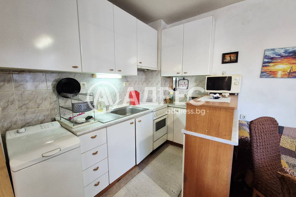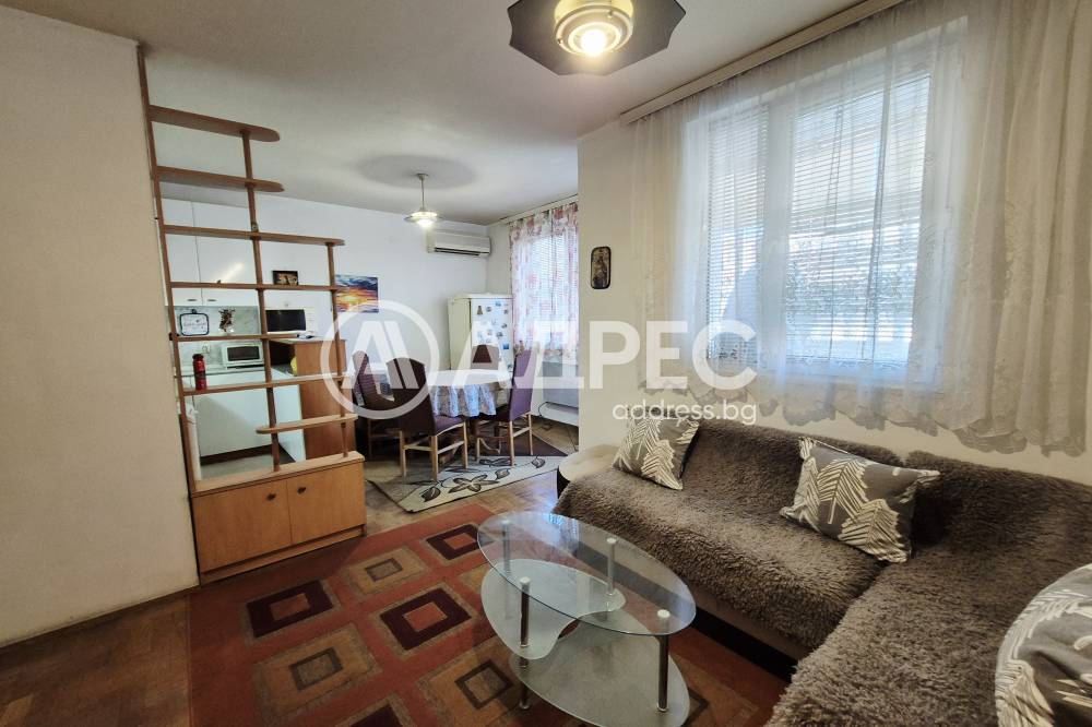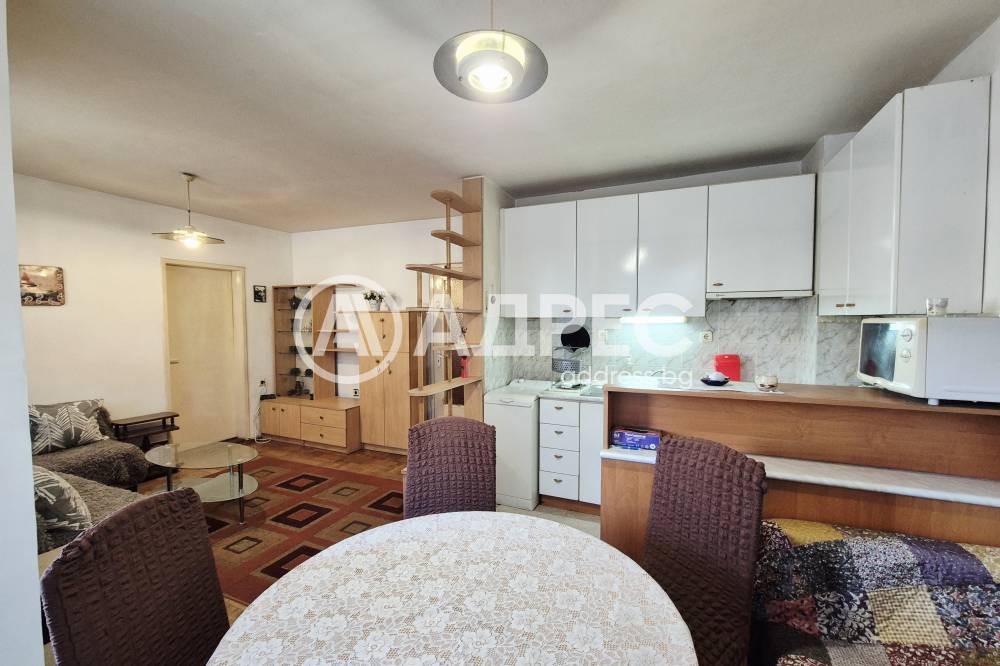 Двустаен, обзаведен апартамент в района на Макдрайв. Жилището се състои от: дневна с кухненска част - бяла техника, мека мебел, остъклена тераса. Преходна спалня - обзаведена. Баня с тоалет.
