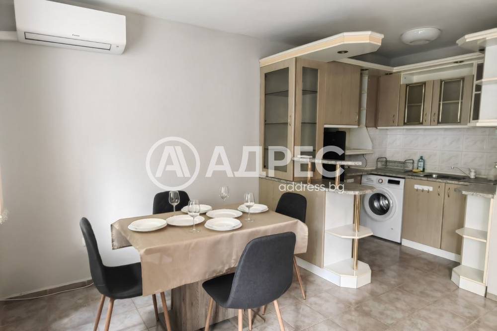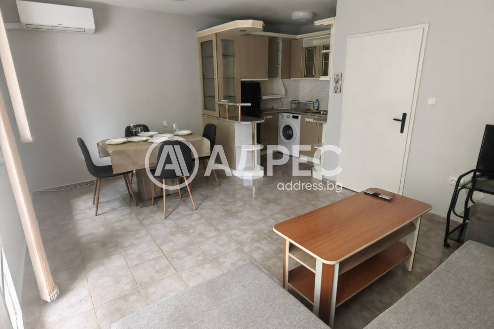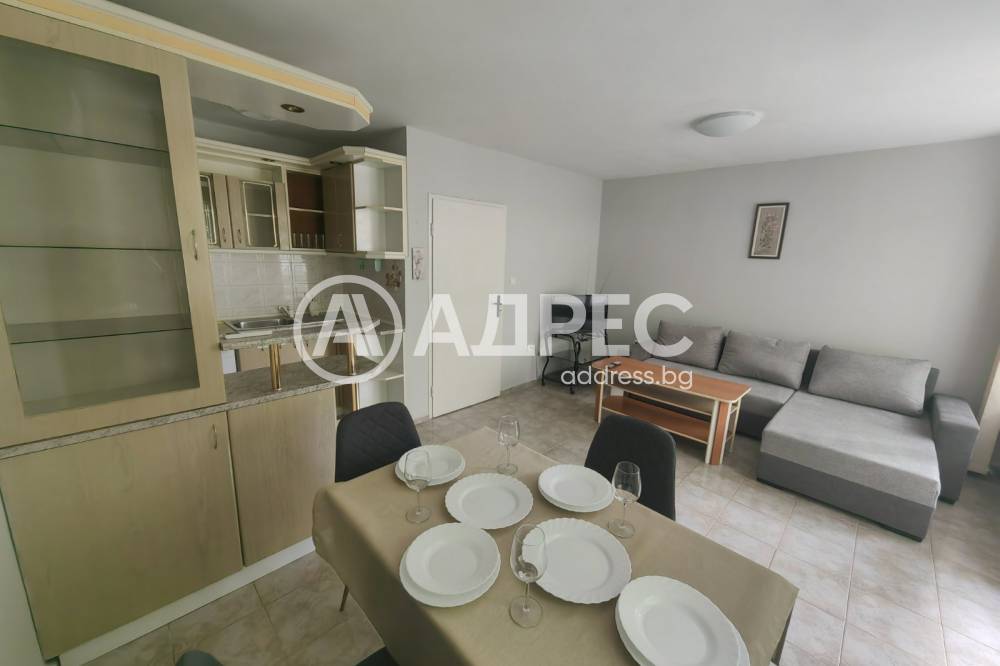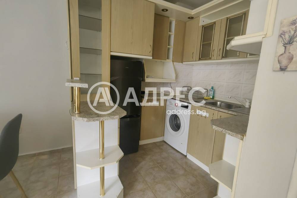 Двустаен, отремонтиран апартамент, напълно обзаведен с нова мебелировка. Представлява дневна с кухненски бокс, остъклена тераса към нея, коридор, санитарен възел, просторна спалня с втора остъклена тераса, килер. Подходящ за наематели без домашни любимци