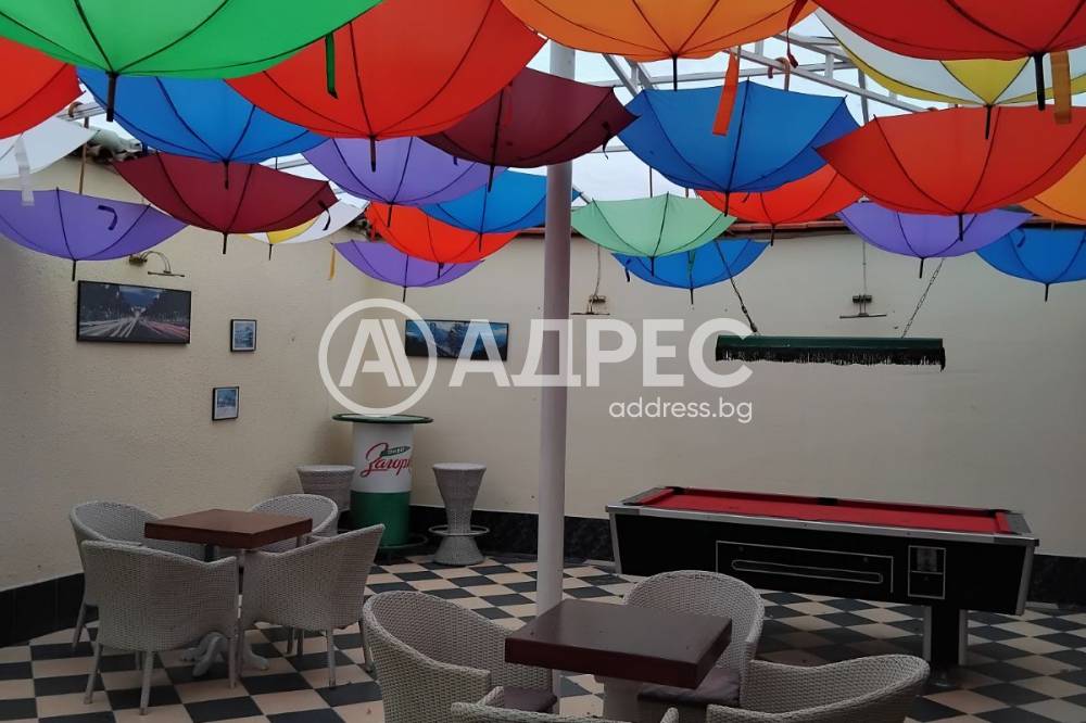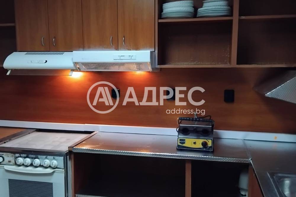 Адрес дава под наем заведение/дентален център/офис/казино с площ 230 м2 в района на Лятно кино Тракия и Макдрайв. Състои се от вентилирани търговска зала и кухня, склад, 2 санитарни възела и закрита зимна градина. Статут: КАФЕ АПЕРАТИВ. Брой места: в заведението 85, пред заведението 25. Напълно оборудвано и обзаведено съгласно всички изисквания. С всички необходими документи и разрешителни на Община Варна, включително ХАСЕП система, готово за работа.