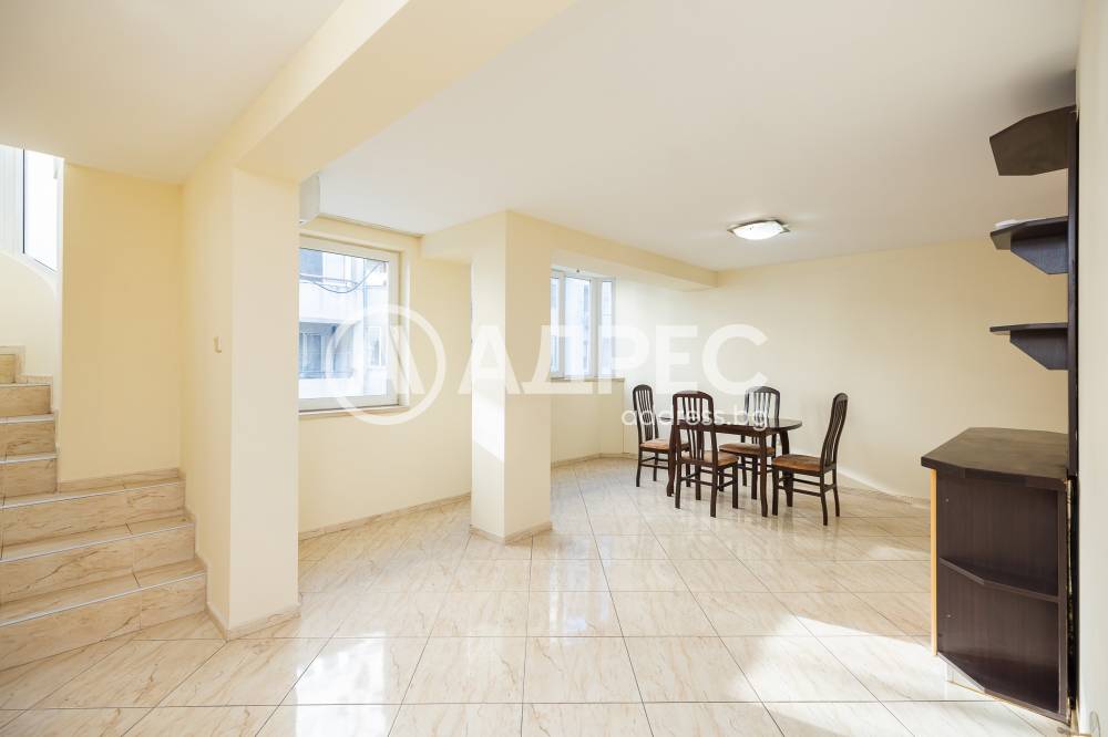 Тристаен, просторен апартамент, тип мезонет. На първо ниво е разположен голям дневен тракт с оборудвана кухня и санитарен възел. Второ ниво е с широко входно антре, две спални и санитарен възел.