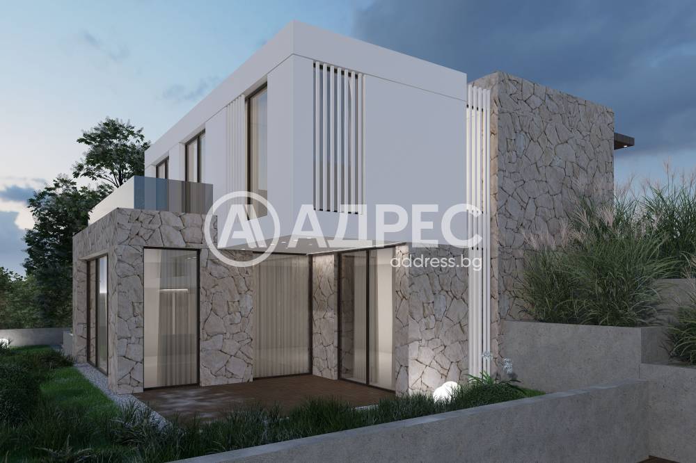 Новострояща се луксозна двуетажна къща в м-т "Ален мак". На първи етаж са разположени голям дневен тракт, една спалня, баня с тоалет. На втори етаж има три спални, едната със собствена баня, още една баня с тоалет и панорамна тераса. Къщата ще разполага и с двоен гараж. Достъпът е асфалтов, има и централна канализация.