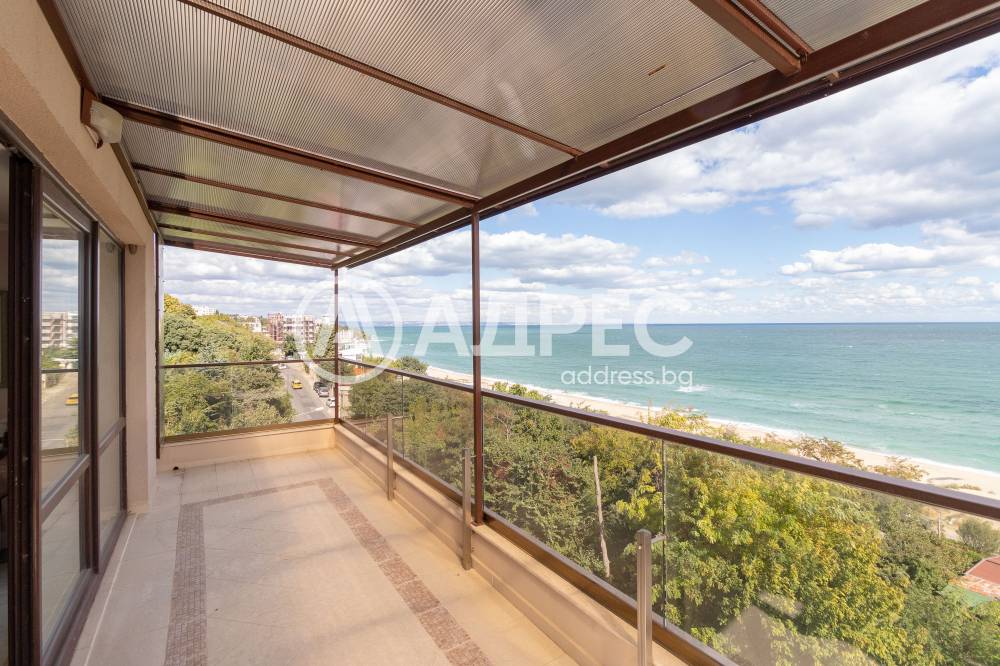Състои се от просторна дневна над 50кв., три големи спални /между 15 и 25кв.м./, към родителската има и удобна гардеробна и баня, допълнителна баня с тоалет . Имотът има прекрасна тераса с неповторима морска панорама. В продажната цена са включени и две паркоместа във вътрешен двор.