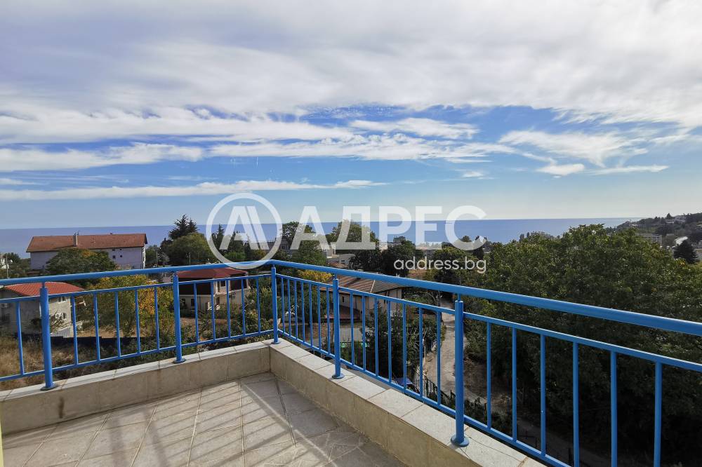 Тристаен апартамент с фронтална морска панорама от всички стаи. Предлага се напълно обзаведен, кокетен и уютен. Разполага с дневна, две спални, санитарен възел, излаз на простотна обща тераса от всички стаи.