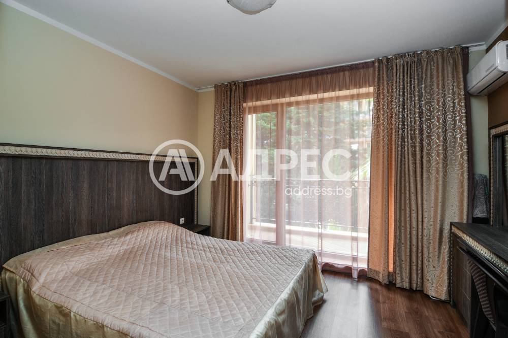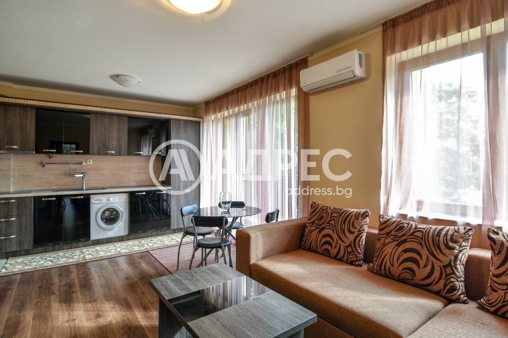 Тристаен апартамент на втори жилищен етаж с изложение изток - юг, застроена площ 82,67 кв.м. Към апартамента има паркомясто в подземен гараж на ниво сутерен с големина 15,15 кв.м. Апартаментът е отлично обзаведен и оборудван. Състои се от входно антре, дневен тракт, две спални, баня с тоалет, тоалет и три тераси. Едната спалня е преходна от хола. Не се допускат домашни любимци.