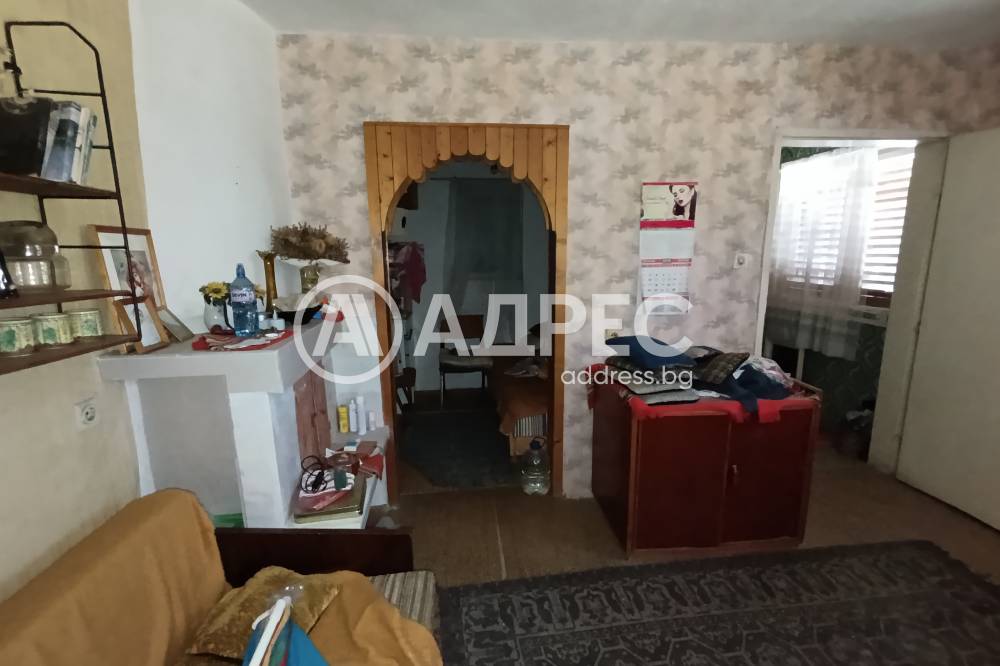 Първи етаж - коридор, баня с тоалет, стая, кухня и остъклена веранда