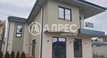 Луксозна къща с дворно място 1390 кв.м.РЗП 650.55 кв.м. на три нива - Подземен етаж 144 кв.м.- котелно на ток и твърдо гориво, склад, парна баня, джакузи,винарна,помещение за фитнес. Първи етаж 316.74 кв.м- кухня, трапезария, хол, спалня, 2 бани. Втори етаж 199.82 кв.м- 3 спални всяка е със собствена баня и тоалет, гардеробна, две тераси. Къщата е обзаведена луксозно с масивни мебели и висок клас техника, изключително просторна и слънчева. Към нея има и гараж за две коли. В двора е ситуирана беседка, заден двор с барбекю, асма и градина. Парцела е с плътна ограда, както и стая с баня и тоалет за охрана.